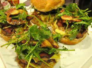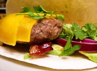 Step 1 : Fry up 4 strips of bacon and set aside.Leave some of the bacon fat in the pan but remove from the eye.Put all of the spices and sauces into the ground beef, mix well and form even patties.